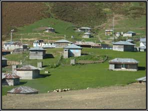 We rijden de volgende dag richtig westen de bergen in. De vochtigheid neemt snel af. Ook zien we dat de herfst is ingetreden. Hoe hoger we komen hoe geler de bladeren aan de bomen zijn. In de bergen staan kleine huisjes van boeren. Men verbouwt wat en verder houdt men geiten en schapen. We stijgen naar 2300m en dan dalen we naar 1000m om weer naar 2000m te stijgen. Onderweg komen door eenvoudige dorpen en plaatsen. De weg is matig en heeft veel gaten. De laatste afdaling is zo steil en bochtig dat we in de 1e versnelling omlaag gaan. Het bergland is nu kaal, geel en droog. We landen na 360km in Tabriz alwaar we 2 nachten in amusementspark Elgoli overnachten. |